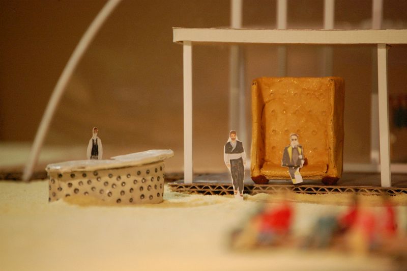 Leontes sitzt auf seinem riesigen goldenen Thron und beobachtet Hermione und Polixenes.