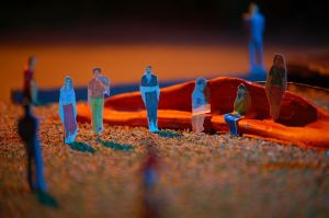 In der Szene treten viele Festfiguren, wie Musiker, Akrobaten, Getränkeverkäufer, Stelzenläufer usw. auf.